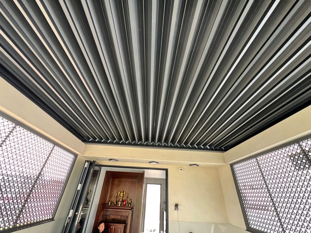 Mái nhôm ziczac tự động là giải pháp che nắng mưa rất hiệu quả được sử dụng phổ biến hiện nay tại các không gian sân vườn, biệt thự, trên mái kính,… Mái sử dụng hệ thống xếp trượt tự động thông minh, tiện lợi.