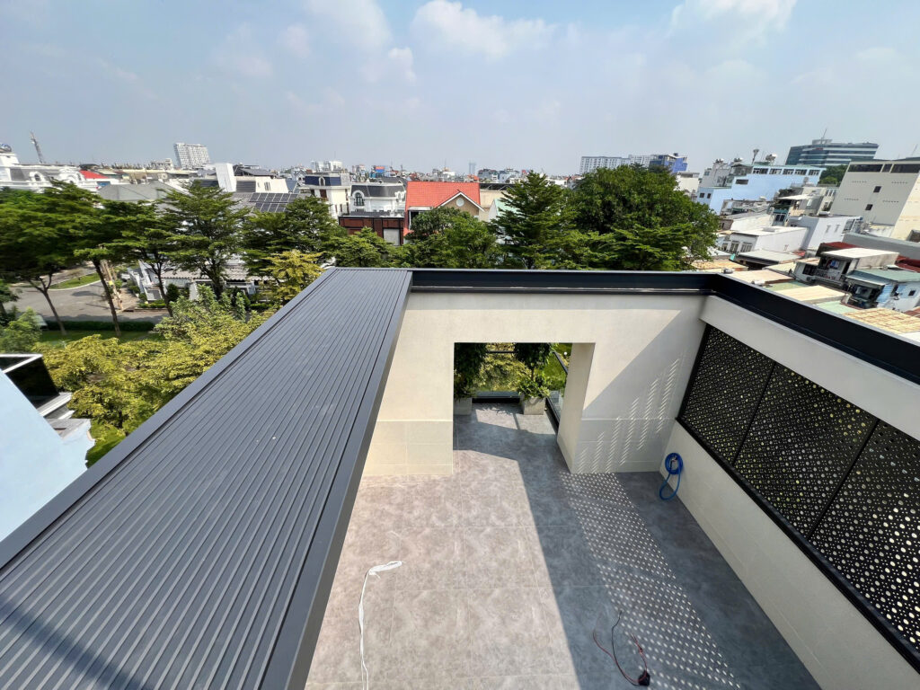 - Tạo không gian thoáng mát tự nhiên khi có thể thu gọn toàn bộ hệ mái về một phía